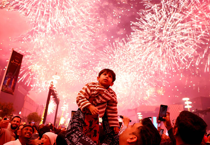 Revelers around the world yesterday toasted the start of the new year, bidding farewell to a volatile year when temperatures soared, US President Donald Trump upended global trade and the brutal conflict in Ukraine raged on.
