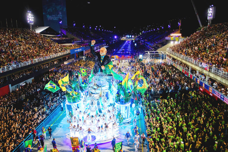 The crowd seated along the 700m avenue sang along to the theme song chosen by Academicos de Niteroi, which included the catchy refrain often used by the president’s supporters: “Ole, ole, ole, ola; Lula, Lula.”