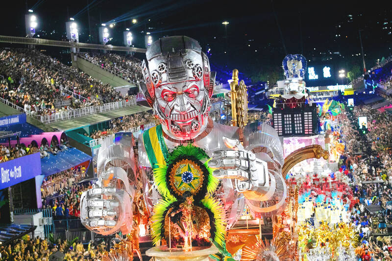 A large metallic robot depicting Brazilian President Luiz Inacio Lula da Silva on Sunday night towered over Rio de Janeiro’s famed Sambadrome avenue in a carnival parade that has drawn ire for its tribute to a sitting president in an election year.