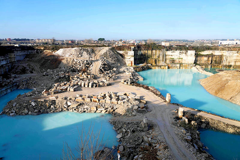 All around the Tivoli quarries, the air is heavy with the stench of sulfur and the constant pounding, clinking and cracking of giant jackhammers blasting ancient rock into pieces.