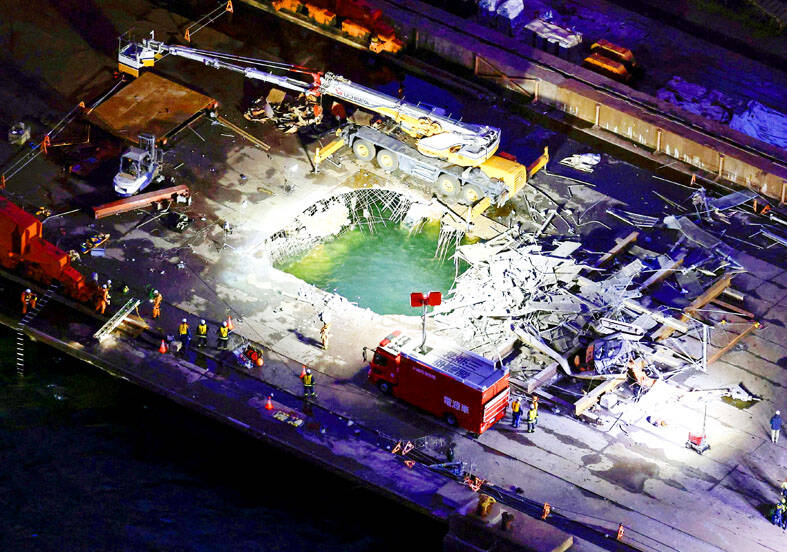 A 12-story scaffold collapsed on Tuesday, killing two workers and leaving one missing, local media reported. The 40m structure gave way during the dismantling of a crane at a JFE Steel construction site in Kawasaki, public broadcaster NHK reported. Aerial footage showed a large, water-filled hole at the portside complex, with fire engines and rescue crews at the scene and divers conducting searches. Five people fell when the scaffold collapsed, NHK said, citing police and fire officials. Initial reports said that three of them were unconscious in critical condition, while one was conscious and another remained missing, but local media later reported that two of the workers had died. The site is in a part of the Kawasaki waterfront where work was under way to dismantle cranes used for unloading cargo from ships, NHK said.