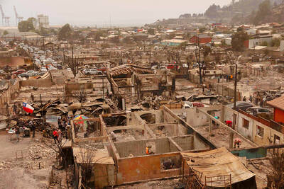 STATE OF EMERGENCY: Chilean President Gabriel Boric said that machinery was being used to clear streets and remove debris in the fight against the fires