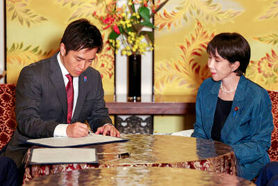 Japan’s ruling Liberal Democratic Party (LDP) and its junior partner yesterday signed a coalition deal, paving the way for Sanae Takaichi to become the nation’s first female prime minister.The 11th-hour agreement with the Japan Innovation Party (JIP) came just a day before the lower house was due to