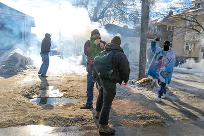 Days of demonstrations against immigration agents left Minnesota tense yesterday, a day after federal authorities used tear gas to break up crowds of whistle-blowing activists, and state and local leaders sued to fight the enforcement surge that led to the fatal shooting of a Minneapolis woman.Confr
