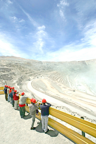 Every afternoon, a bus belonging to Codelco, the world's biggest copper concern, drops about 50 visitors off at a viewing area with an eye-popping panoramic view of the pit mine, in the middle of the Atacama desert, about 1,000km north of Santiago.