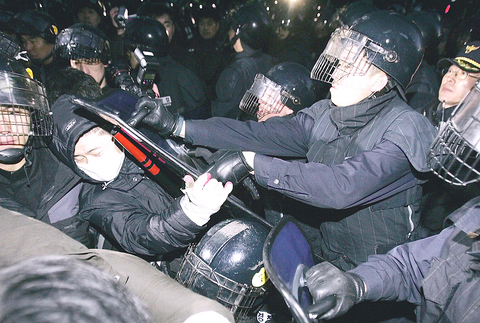 Some protesters kicked and punched the riot police who used water cannon, shields and batons to disperse the demonstrators, police said.
