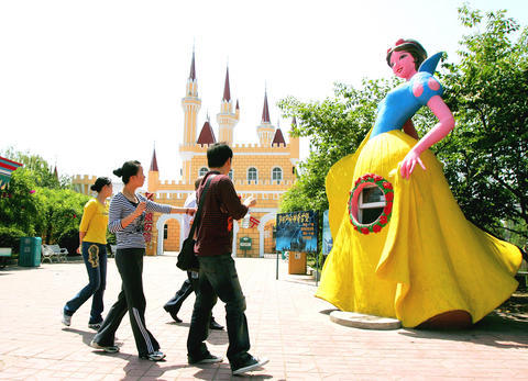 Over the weeklong May Day holiday, the Shijingshan Amusement Park filled its grounds on Beijing's western suburbs with actors in costumes resembling Disney characters and other foreign characters.