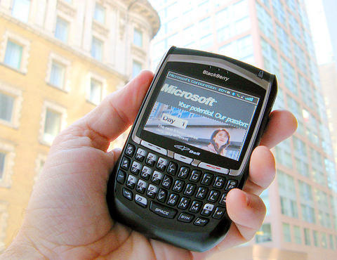 The BlackBerry 8700 model will begin shipping to business customers in China through France's Alcatel-Lucent, Research In Motion said yesterday. Beijing-based China Mobile Ltd (中國移動), the nation's biggest wireless carrier, is providing local BlackBerry service in the country.