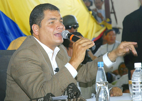 Correa took office last January promising to force foreign oil companies to share more of the oil they produce with the state and to cut ties with the World Bank and IMF.