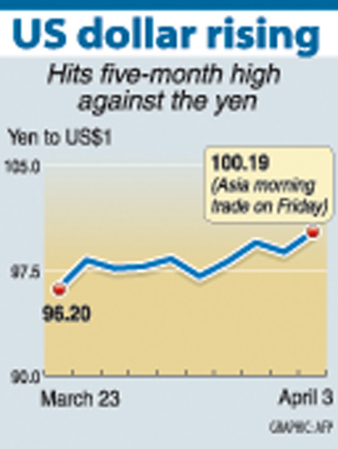 The dollar topped ¥100 for the first time in five months but weakened against other major currencies on Friday as traders assessed the impact of a weak US employment on economic recovery prospects.