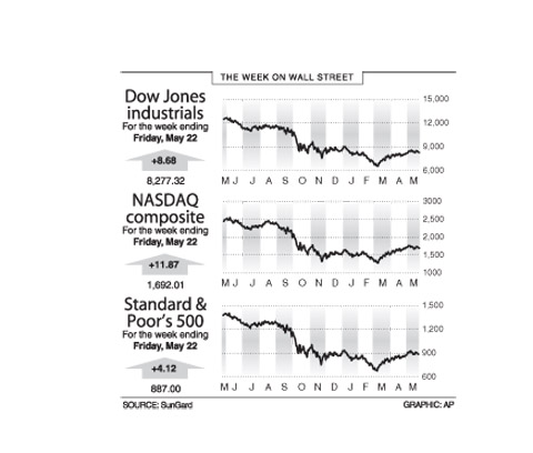 The Dow Jones Industrial Average rose 0.10 percent in the week to Friday to 8.277.32.
