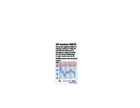 OIL: New York crude oil hit US$70 for the first time in seven months on Friday as the US dollar slid on news of a dramatic slowdown in US job losses, traders said.