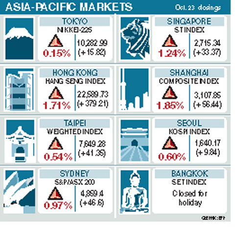 Hong Kong’s Hang Seng Index gained 3 percent.