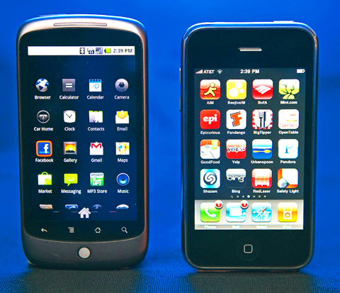 Both mobile phones have the latest version of Google’s Android mobile phone software installed. Both have large color touchscreens, 5-megapixel cameras and include a microprocessor that is faster than the one found in the iPhone.